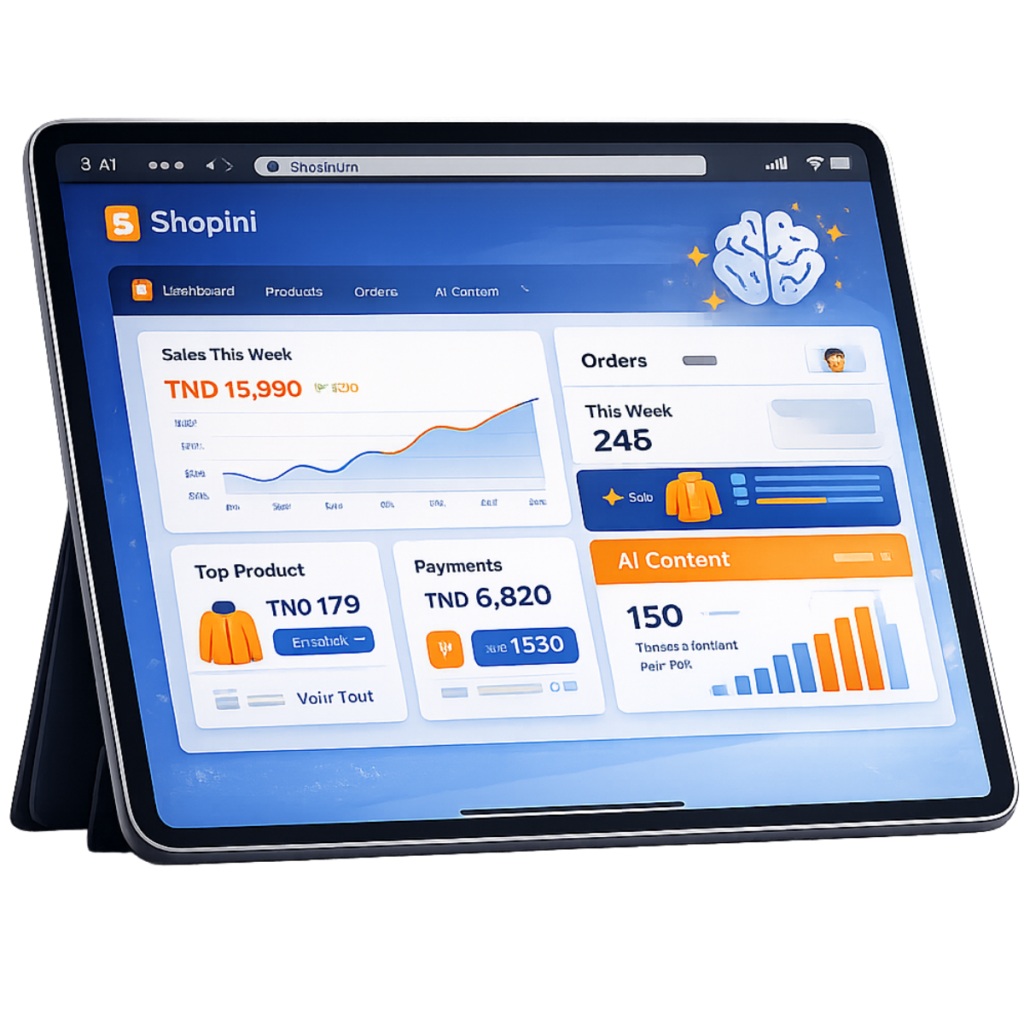 Commencez à vendre instantanément grâce à la plateforme intelligente et assistée par IA de Shopini.